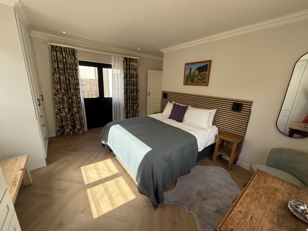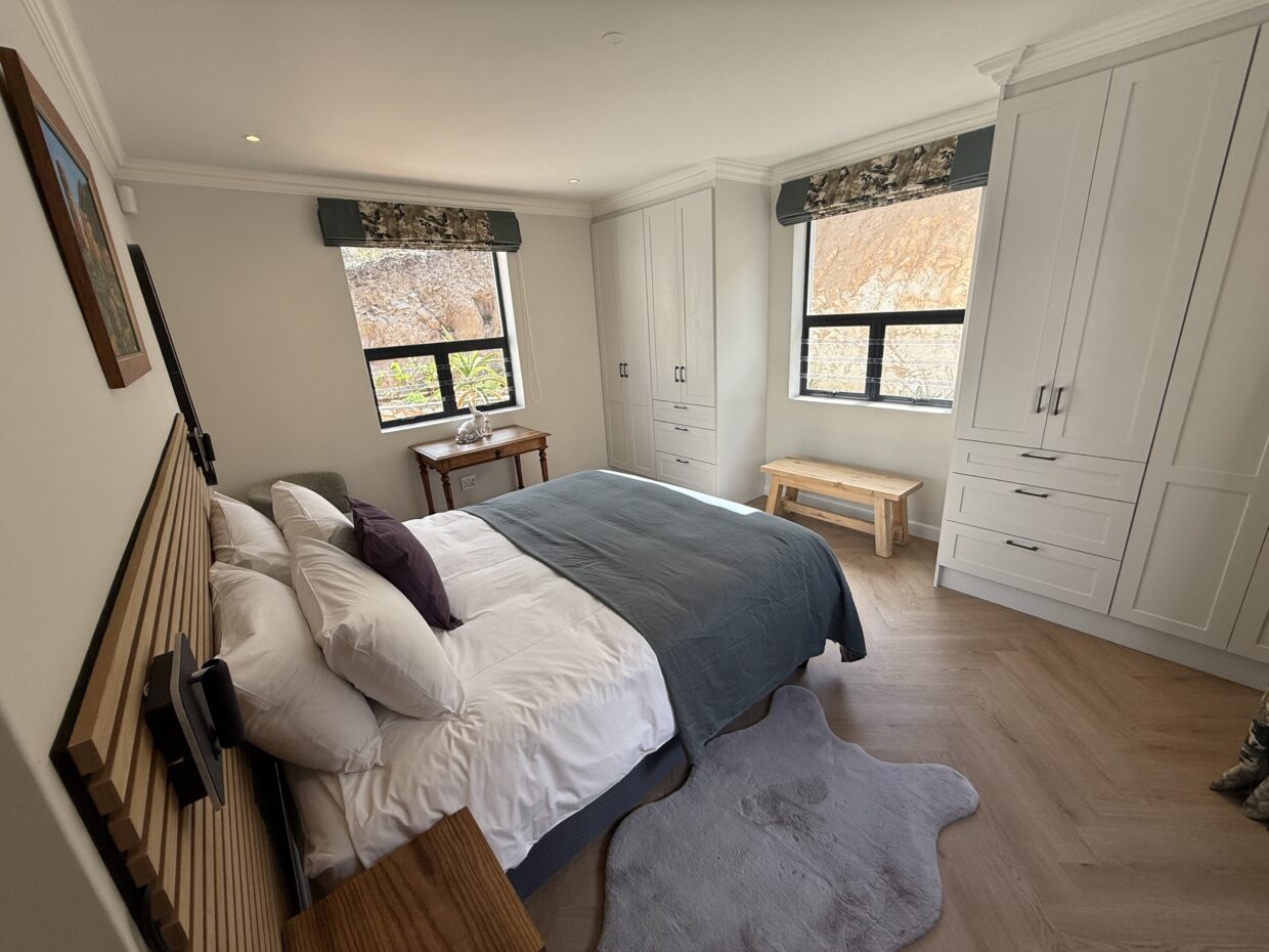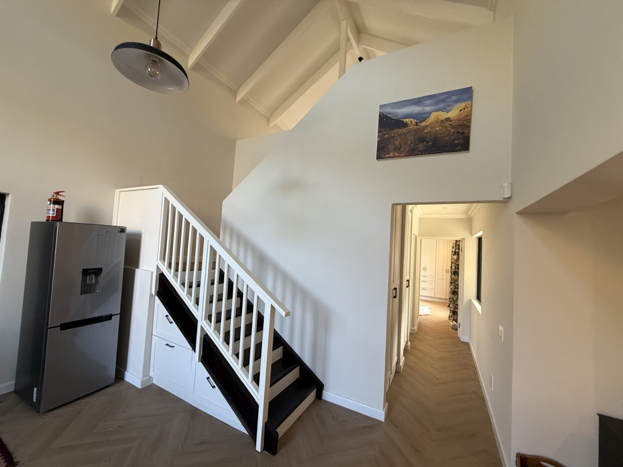 Mountain Aloe is the larger of the two cottages, offering comfort, space, and modern convenience. Perfect for up to four guests, it features a tranquil bedroom with a queen-size bed and French doors opening into the garden. The bathroom is fitted with a walk-in shower, washbasin, and toilet, and comes stocked with all linen, bath towels, and indulgent locally produced soaps. A hairdryer and make-up removal cloths are also provided. The open-plan living area is designed for relaxation and ease, boasting a fully equipped kitchen with stove, oven, microwave, fridge-freezer, cutlery, crockery, a 4-seater dining table, and even a dishwasher. From here, the lounge invites you to unwind with comfortable seating, a wall-mounted smart TV, and a cozy fireplace — perfect for winter evenings. Free Wi-Fi is available throughout the cottage. Sliding doors lead out to a deep furnished veranda, complete with a braai area overlooking an indigenous garden — the ideal spot to soak up the peaceful surroundings. Upstairs, the spacious loft doubles as a workstation and additional sleeping area, with a desk, ample office space, and a queen-size bed, which can be separated into two single beds to accommodate extra guests. Whether you’re here to relax, recharge, or mix leisure with a little work, Mountain Aloe is the perfect countryside escape.